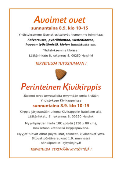 Avoimet Ovet ja Kivikirppis syyskuussa 8.9.