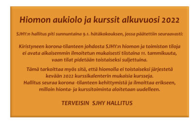 Hiomon aukiolo ja kurssit alkuvuosi 2022