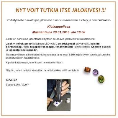Kyseessä on laitteiden esittelytilaisuus, mutta 10-11.2. on Jalokivien tunnistukurssi,