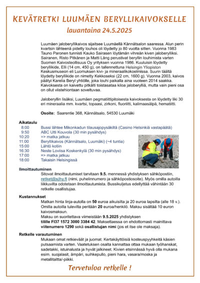 Kevätretki Luumäelle 24.5.202516.3.2025 in Tiedotteet kirjoittajalta Ismo Hellsten Vain SJHY:n jäsenille !