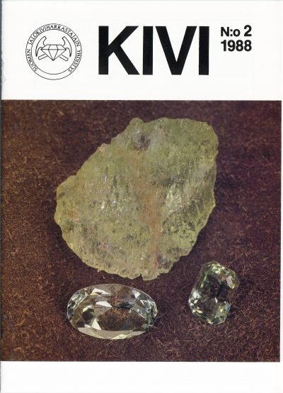 Kansikuva: Kaakkois-Suomesta löytynyt beryllikide ja kaksi koehiottua jalokiveä. Raakakide n. 30 x 30 mm. Hionta Kauko Sairanen. Kuva Jari Väätäinen.