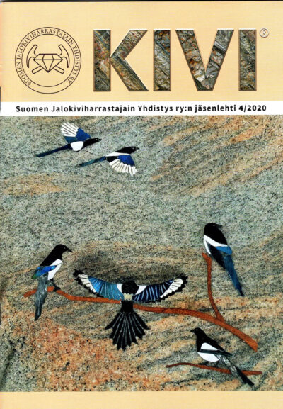 Kansikuva: Eva Jarnen kivi-intarsiatyö ”Harakat”; tausta gneissiä, oksat heikkakiveä, harakat spektroliittia, valkoista opaalia ja mustaa diabaasia.