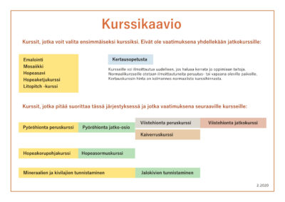 Kaaviosta näet missä järjestyksessä osa kursseista suoritetaan ja mitkä kurssit vain yksittäiskursseja, ilman jatkoa.