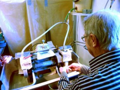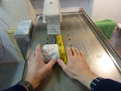 Karkeassa muotoilussa olen käyttänyt timanttitahkoa d= 20 cm (kuva1). Hienohiontaa on suoritettu (kuvan 2) timanttinauhakoneella. Sahaamisessa olen käyttänyt d= 30 cm timanttisahaa (kuva 3).