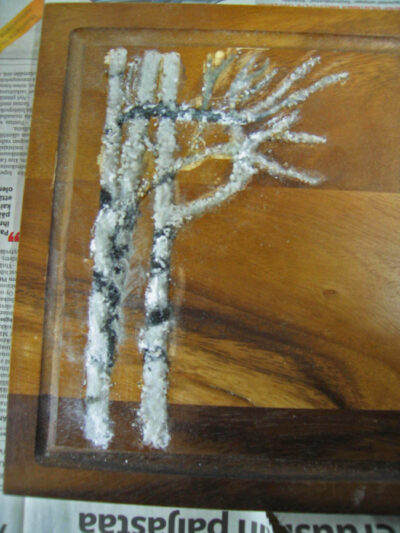 - Viimeistelin levyn unikkoöljyllä. Olisin käyttänyt vahaa, jos puuesine olisi ollut vain koristekäytössä (kuva 6).