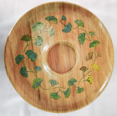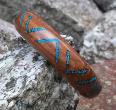 Puuesineitä voi koristella kivimurskeella, joka on upotettu kaiverrettuun uraan ja kiinnitetty liimalla. Koristemurske hiotaan tasaiseksi.