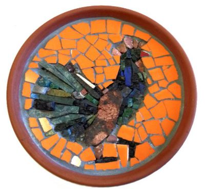 Ja nimenomaan kivimosaiikki eli tarkoituksena on hyödyntää jokaiselle kivenhiojalla kertyvää kivisilppua. Kurssilla on mahdollisuus myös kaakelimosaiikkiin. Hiomolla on tarjolla tasapaksuja kivenpalasia, mutta nyt kannattaa hyödyntää omaa ”silppukokoelmaansa”.